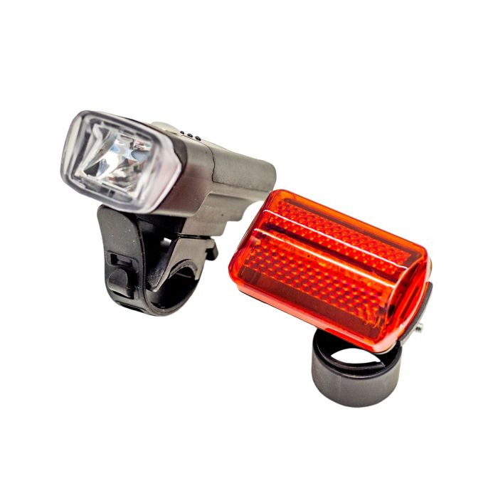 Paristolla toimiva polkupyörän valosarja. Kiinnitys nopeasti ja helposti kumilenkillä. Etuvalo: 1 x 3W LED Toshiba 120lm. Toiminnot: 100% - 50% ja hidas/nopea vilkku Materiaali: ABS-muovi Paristot: 3 x AAA (ei sisälly pakkaukseen) Mitat: 97 x 32 x 30 mm, paino 80g. Takavalo: 3 x LED Toiminnot: päällä - 6 vilkkuvaa tilaa - pois Mitat: 25 x 60mm, paino 62g Paristot: 2 x AAA (ei sisälly pakkaukseen)
