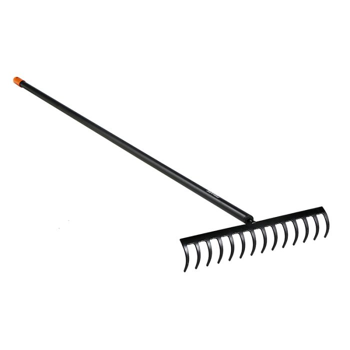 Monikäyttöinen rautaharava kukkapenkkien muotoiluun, maan tasoitukseen ja muihin puutarhatöihin, kuten oksien haravointiin ja katteiden levittämiseen. Rautaharavan terä on karkaistua hiiliterästä ja varsi alumiinia. Fiskars Solid™ rautaharava on luotettava valinta, joka palvelee sinua vuosia.