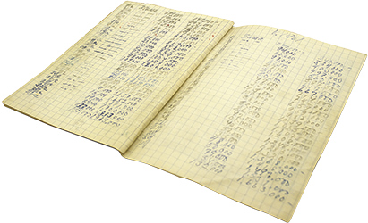 Kassakirjana toiminut ruutuvihko.