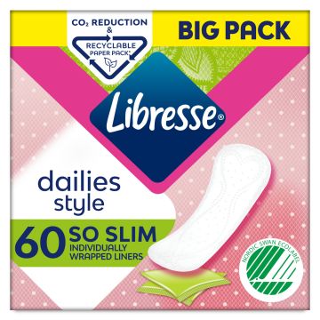 Libresse So Slim -pikkuhousunsuoja on huomaamaton, joustava ja ohut - niin ohut ja pehmeä, että tuskin huomaat sitä. Täydellinen päivittäiseen käyttöön, raikkaan tunteen säilyttämiseksi tai valkovuotoon. Libresse-pikkuhousunsuojissa on ProSkin-koostumus, joka sisältää pH-tasapainotettua uutetta ja hengittävät suojat huolehtivat samalla intiimialueestasi. Libresse So Slim on yksittäispakattu, jonka vuoksi se on helppo pitää mukana ja voit tuntea olosi raikkaaksi joka päivä. CurveFit™ -ominaisuudella varustetut pikkuhousunsuojamme on suunniteltu erityisesti mukailemaan kehosi muotoja ja pysymään paikoillaan, mitä ikinä teetkin. Dermatologisesti testattu ja hajusteeton.
