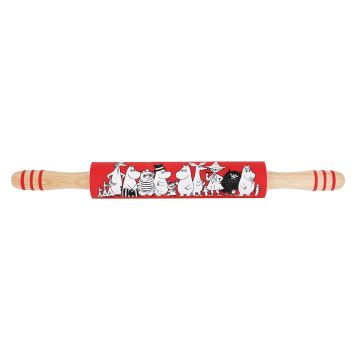 Kätevä silikoninenmininuolija, jossa on puinen kahva. Nuoliljaosassa on muumiaiheinen kuvitus.