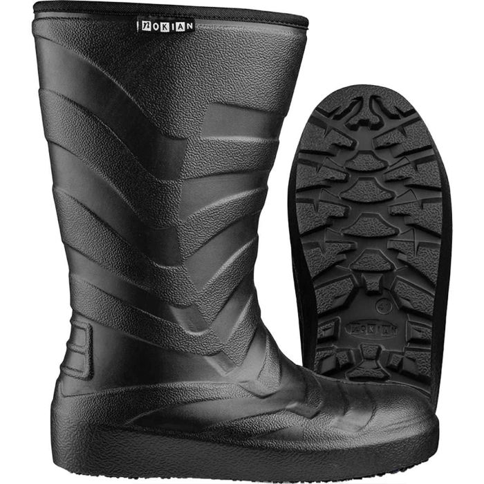 Erittäin kevyt pitkävartinen EVA-kumisaapas lämpimällä karvavuorilla. Saappaassa on tilava lestimitoitus. Sopii talvikäyttöön ja materiaali kestää kylmää -20 Celsius astetta. Ulkopohjassa pitävä luonnonkuminen pohjakuviointi.