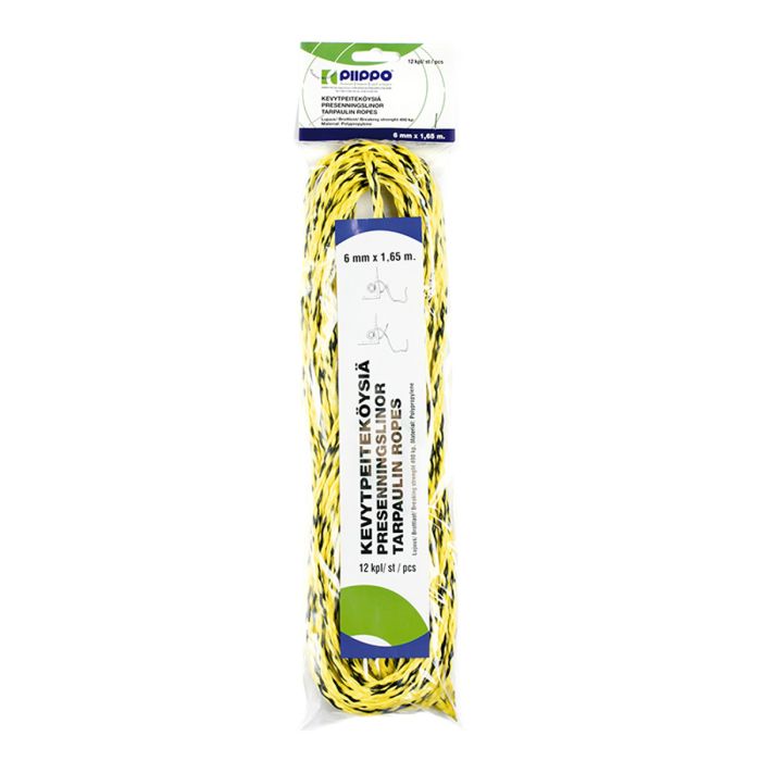 Kätevässä kevytpeiteköysisarjassa on 12 KPL kelta-mustia kevytpeiteköysiä. Köydet ovat 8-päisiä palmikoituja, ja niissä on kätevästi teroitettu kärki köyden peitteeseen pleissaamista varten. Köysien palmikointi on löysää ja terävän käyden pään ansiosta pleissaaminen on todella helppoa. Pakkauksessa on 12 kappaletta 6mm paksuja ja 1,65m pitkiä köydenpätkiä. Paksuus 6mm, Pituus 1,65m, Löyhä punonta