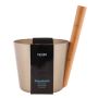 Ajattoman tyylikästä designia yhdistettynä käteensopivaan muotoiluun. Metalliosa on värilliseksi anodisoitua alumiinia ja kahva lämpökäsiteltyä bambua.