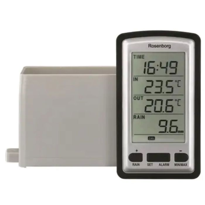 Rosenborg Sääasema on varustettu sademäärän mittaustoiminnolla, kellolla ja päiväyksellä sekä ulko- ja sisälämpötilan mittauksella. Sääasema toimii paristoilla (ei sis. pakkaukseen). Sademäärän mittaus 1h, 24h, viikko, kuukausi ja kokonaismäärä. Sademäärän mittaus min/max. Radio aika ja päiväys. 12/24 tunnin toiminto ja kalenteri. Sisälämpötila. Aikavyöhyke asetus ja aikahälytys. Sääasema 2 x AA-paristo (ei sis.). Siirrettävä sensori 2 x AAA-paristo (ei sis.).