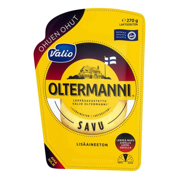 Valio Oltermanni® Savu juustoviipaleet on valmistettu alkuperäistä Oltermanni® kermajuustoa lempeästi leppäsavuhakkeessa savustamalla. Ohuen ohuessa viipalemuodossa lempeä savun maku tulee juuri sopivasti esiin. Valio Oltermanni® Savu ohuen ohuet viipaleet sopivat erinomaisesti voileiville, hampurilaisiin ja lämpimiin ruokiin lisämakua tuomaan sekä sellaisenaan syötäväksi. Kaikki Valio Oltermanni® juustot valmistetaan suomalaisesta maidosta eivätkä ne sisällä lisäaineita..